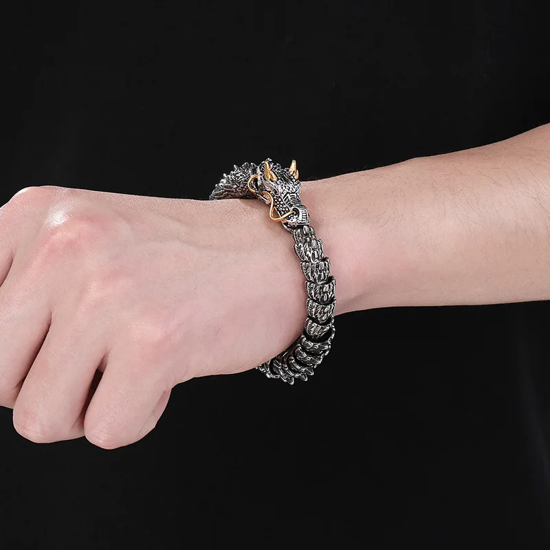 Unleash bold style with the Dragon Cuff Steel Bracelet for men. Crafted from durable stainless steel, this cuff features an intricate dragon design symbolizing power and strength. Its open-ended design ensures a comfortable fit while delivering a fierce, statement-making look. Perfect for men who want to combine rugged elegance with mythic symbolism in their accessories.